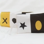 Ezzel a textil leporellóval gyermeke felfedezheti a kontrasztos színek és formák világát, melyek ösztönzik a veleszületett kíváncsiságot és javítják a koncentrációt. Puha anyagokból készült, így biztonságos és kellemes tapintású. Remek eszköz nemcsak a szórakoztatáshoz, hanem az érzékszervi képességek fejlesztéséhez is: