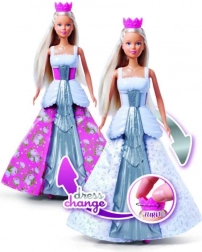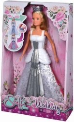 A STEFFI LOVE Varázslatos esküvő baba lenyűgöző élményt nyújt az okos 2 az 1-ben ruhaváltó mechanizmusnak köszönhetően. Egyetlen korona-forgatással a romantikus rózsaszín virágos ruha gyönyörű fehér menyasszonyi ruhává alakul. A hosszú, szőke haj fésülhető és formázható, így minden játék más és más lehet.