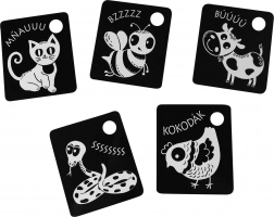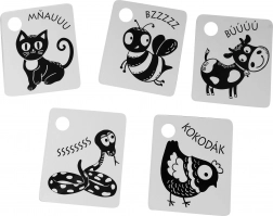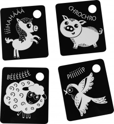 Támogasd kisbabád fejlődését a kontrasztos fekete-fehér kártyákkal, amelyek 9 darabos csomagban érkeznek, kiváló cseh alapanyagokból készítve. Minden kártyán akasztónyílás található, a csomag része egy műanyag karika az egyszerű összefűzéshez. A kártyák stimulálják a látást, fejlesztik a finommotorikát és a természetes kíváncsiságot, beleértve az állatok megismerését is.