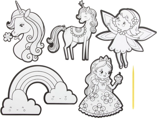 A mellékelt kaparó tollal kikaparhatja az előnyomtatott képet és varázslatos színes csodává alakíthatja. A kész kép könnyen felhelyezhető bármilyen felületre, fantáziája szerint.<7fp>