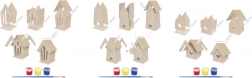 A készlet tartalmazza az összes szükséges eszközt – előre vágott fa, festékek és ecset – amely lehetővé teszi az azonnali alkotást további segédeszközök nélkül.