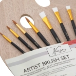 Művész ecsetkészlet fából készült palettán ideális különféle képzőművészeti technikákhoz. Elegáns design fekete nyéllel és arany színű fém hüvelyekkel profi megjelenést és magas készítési minőséget biztosít.
