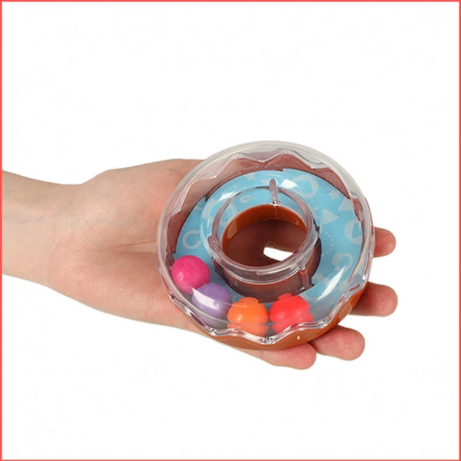 A vidám gyöngyök az átlátszó gyűrűben mozgásra csörögnek, serkentve a gyermek látását és hallását.
