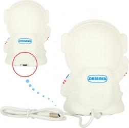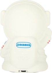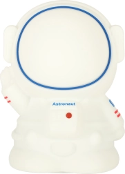 Az űrhajós teste rugalmas, selymes tapintású szilikonból készült. A gyerekek összenyomhatják vagy átölelhetik, amikor félnek a sötétben. Az ABS + szilikon anyagok kíméletesek és nincsenek éles szélek.