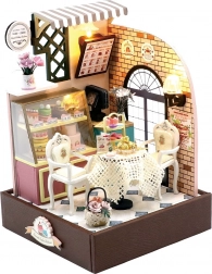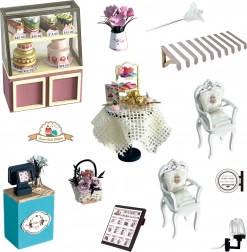 Alkossa meg saját meghitt cukrászdáját miniatűr asztalokkal, székekkel és desszertes vitrinnel. A készlet szétszerelt állapotban érkezik, részletes útmutatót és praktikus eszközöket tartalmaz a könnyű összeszereléshez. A kész modell élethű diorámaként hat, ideális a miniatűrök és a stílusos dekorációk kedvelőinek.