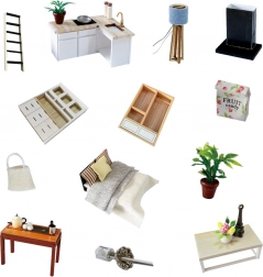 A készlet LED világítást tartalmaz, amely élethű megjelenést ad az Ön alkotásának. Figyelmet érdemel az élethű dekoratív részletek, amelyek magukba foglalják a művészeti falakat, kanapét és étkező szettet.