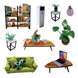 Állítsa össze a bútorokat, mint egy valódi házban, a zöld kanapétól a fa dohányzóasztalig.