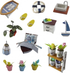 Fedezze fel a kis tárgyak széles választékát, mint például napozóágyak, kis lépcsők és miniatűr bútorok, melyek tökéletesen visszaadják a strand hangulatát. Ezek a tárgyak realisztikus megjelenést kölcsönöznek a modelljének és növelik annak dekoratív értékét.