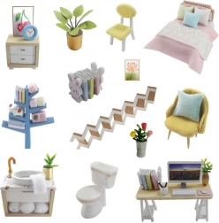 A Miniatűr házikó – A nyugalom otthona minden alkotás- és részletkedvelőt elbűvöl. A csomagban fa, papír és textil elemeket talál, amelyekből lépésről lépésre valósághű helyiségeket építhet bútorokkal, kiegészítőkkel és működő LED világítással. Az elkészült darab gyönyörű dísze lesz a polcnak, a dolgozósaroknak vagy a gyerekszobának.