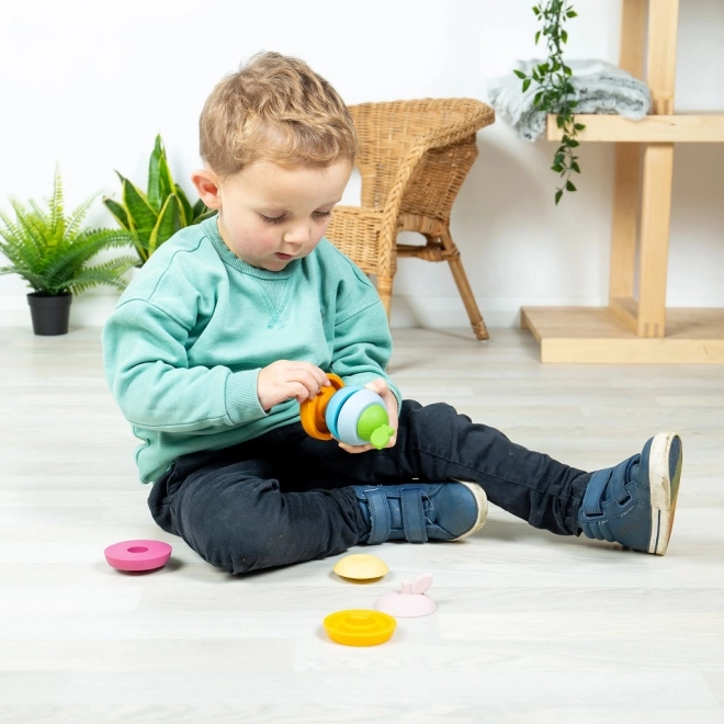 Ismerkedj meg a Bigjigs Toys kreatív szettjével, amely a legelső rakosgatást is szórakoztató tanulássá varázsolja. Az alma és a körte egyaránt öt sima, színes, 100% szilikon elemből áll. A gyerekek gyakorolják a fogást, a pontosságot és a türelmet, miközben a fogzás időszakában biztonságosan rágcsálhatják a puha anyagot.