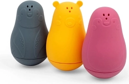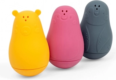 Varázsolja a fürdési időt örömteli rituálévá ezekkel a bájos vízi barátokkal. A három állat figurából álló készlet 100% szilikonból készül, műanyagmentes, puha és biztonságos a kis kezeknek, és a felső nyílások megnyomásakor vizet spriccel. A játékok könnyen tisztíthatók és mosogatógépben moshatók, így tökéletesek a mindennapos használatra már 1 éves kortól.