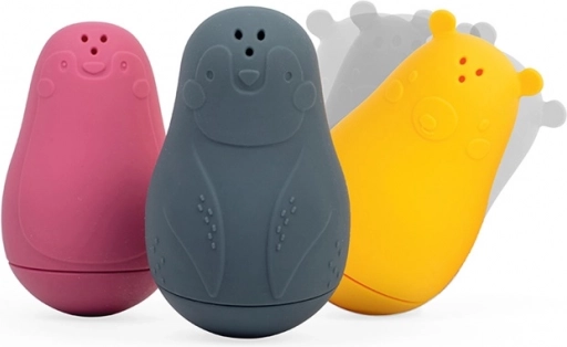 A bájos pingvin, jegesmedve és fóka minden fürdést vidám játékká varázsol. Csak meg kell tölteni vízzel, megnyomni, és figyelni a vízsugarat a három felső nyíláson keresztül. A puha, mégis tartós 100% szilikon kellemes tapintású, biztonságos a gyerekeknek és környezetkímélőbb megoldás.