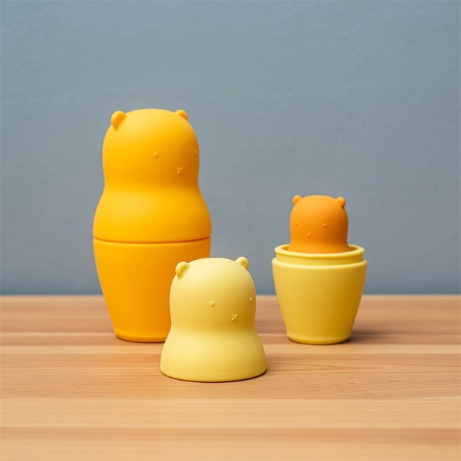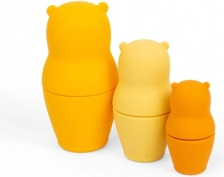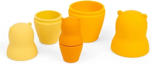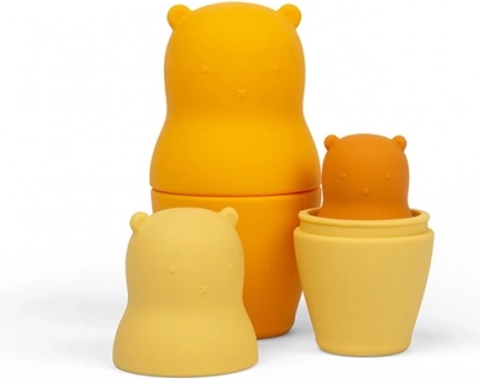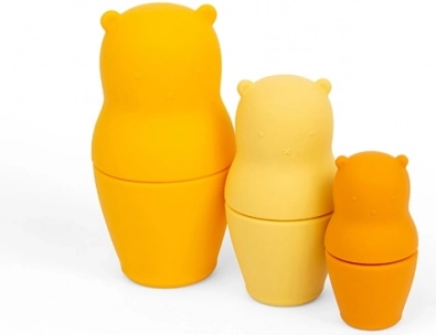 A bájos szilikon matrjoska macik egyesítik a szórakoztató fejlesztő játékot és a praktikus rágókát egyben. Puhák és rugalmasak, 100% élelmiszeripari szilikonból készülnek, amely nem mérgező, könnyen tisztítható és ellenáll a baktériumoknak és a foltoknak. Ideális 1 éves kortól, és egyben szép dekoráció a gyerekszobába.