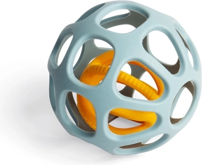 A puha, 100% szilikon kíméletesen masszírozza az ínyt. A kisebb labda a nagyobba helyezhető, ami támogatja a logikus gondolkodást és a játékos felfedezést.
