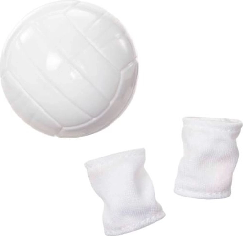 A készlet része egy fehér röplabda és két illő karkötő, amelyek kiegészítik a baba sportos megjelenését.