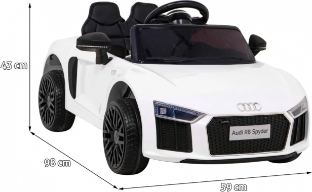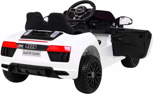 Sportos vezetés a kis sofőröknek az ikonikus AUDI R8 Spyder stílusában. Az autó két darab 35 W-os motorral működik, tápellátását két darab 6 V/4,5 Ah akkumulátor biztosítja, így simán halad kemény felületen és kerti ösvényeken is. A lágy indulás (Soft Start) megóvja a gyermeket a rántástól, az első és hátsó tengely rugózása pedig növeli a kényelmet.