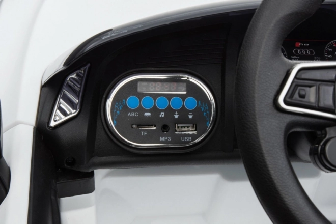 Elöl-hátul LED világítás, MP3/USB/SD/AUX panel és gombok a kormányon. Nyitható ajtók és az AUDI R8 autó autentikus részletei, amelyek minden gyermeket lenyűgöznek.