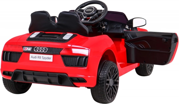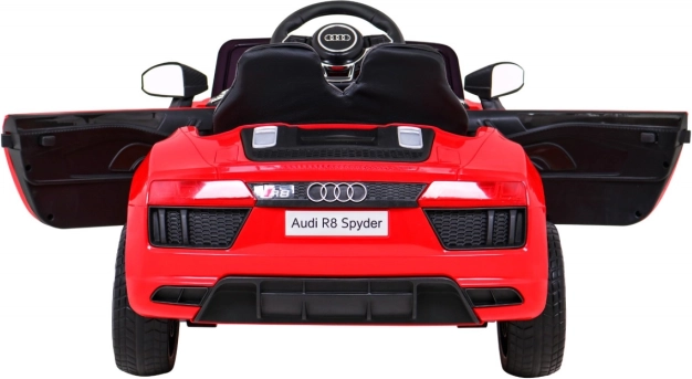Az Audi R8 Spyder elektromos kisautó a szupersportautók ikonikus megjelenését hozza el a gyerekek világába. Két 35 W-os motor gondoskodik az egyenletes előre- és hátramenetről, míg a lágy indulás megóvja a gyerekeket az elinduláskori rántásoktól. A puha EVA kerekek és az első-hátsó rugózás növelik a kényelmet járdán és a kertben is.