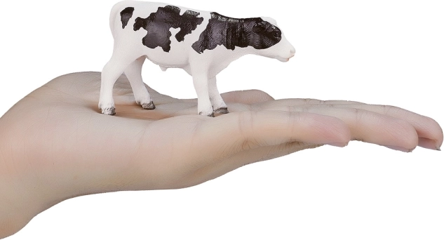 Precíz modellezés és autentikus foltok a holstein borjún, amelyek támogatják a játékot és az állatismeretet.