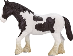 Ez a részletgazdag figura a méltóságteljes Clydesdale fajtát mutatja be jellegzetes fekete-fehér színezéssel. Minőségi anyagának és gondos formázásának köszönhetően élethű a sörénye, farka és a lábak „zászlói”, amelyek tovább növelik az autentikusságot.