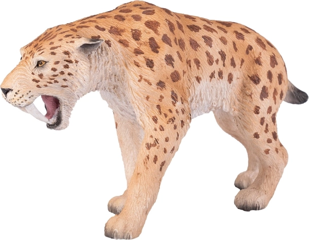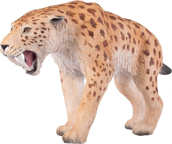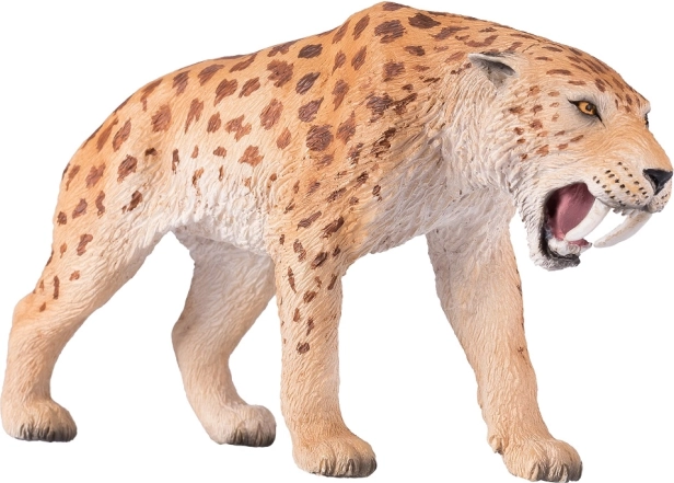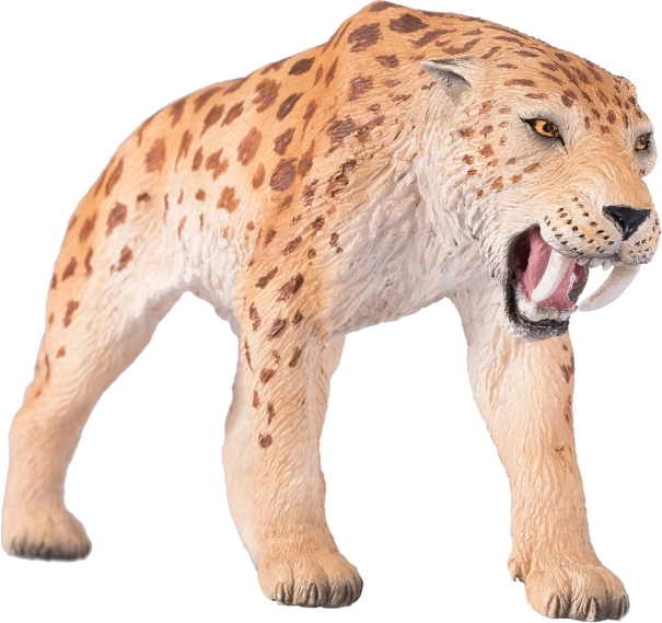 Ez a figura hűen ábrázolja a kardfogú tigris realisztikus vonásait, beleértve jellegzetes hosszú szemfogait.