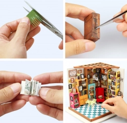 Szereti a könyvek illatát és a meghitt zugokat? A ROBOTIME Mini Könyvtár építőkészlet aprólékosan kidolgozott részleteket, LED világítást és pihentető alkotást kínál több órán át. A csomag mindent tartalmaz, beleértve a ragasztót, festékeket és ecsetet – csak kezdjen alkotni, és díszítse otthonát egy egyedi dekorációval.