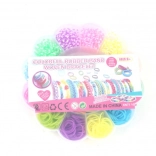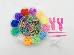 Kreatív készlet kicsiknek és nagyoknak: 900 db színes gumi virág alakú dobozban, kiegészítve kézi szövőkerettel, horgoló tűvel és kapcsokkal. Készíts eredeti gumis karkötőket, medálokat és díszeket, fejleszd kézügyességed, és élvezd a hosszú órákon át tartó szórakozást.