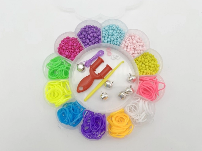 Ez a teljes karkötőkészítő szett kezdőknek és kreatív rajongóknak egyaránt ideális. A virág alakú doboz mindent átláthatóan egy helyen tart, és a vidám színeknek köszönhetően könnyedén alkothatsz egyedi kombinációkat.