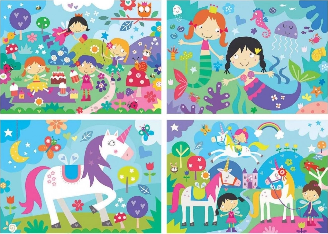 Az EDUCA új, varázslatos barátok 4 az 1-ben szettje lehetőséget ad a gyerekeknek, hogy fejlesszék kirakózási készségeiket. A négy puzzle mindegyike 28 x 20 cm méretű és eltérő darabszámú, ami biztosítja, hogy minden következő kirakóval nőjön a nehézségi szint: