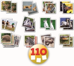 Családi szórakozás memóriajátékkal, amely 110 kártyát tartalmaz a természet állatainak fényképeivel. Ideális a gyerekek és felnőttek memóriájának edzéséhez.