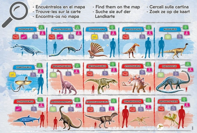 Fedezd fel a történelem előtti világ varázsát a mi puzzle-jeinkkel. Ezek a kirakók nem csak szórakoztatnak, hanem tanítanak is. Amint kirakják őket, a gyerekek megkereshetik a különféle dinoszaurusz fajtákat, és többet tanulhatnak róluk a mellékelt tájékoztató füzeten keresztül, amely tartalmazza:
