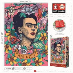 Fedezze fel Frida Kahlo művészetének szépségét és innovációját ezzel az egyedülálló puzzle-vel. 500 precízen kivágott darabot tartalmaz, amelyek együtt lenyűgöző képet alkotnak. Az összeállított kép mérete 34 x 48 cm, ideális dekoráció bármely belső térbe.