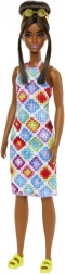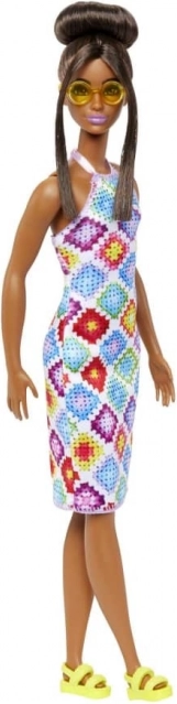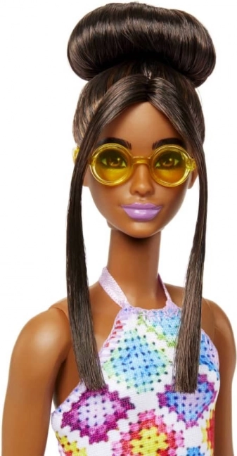 A BARBIE Fashionistas baba a sokszínűséget és az egyedi stílust ünnepli. Feltűnő ruhát visel geometrikus, patchwork mintával, amely borús napon is színekben ragyog. Az elegáns konty és az arcot keretező tincsek mellé stílusos szemüveg és divatos szandál társul – kész minden kalandra.