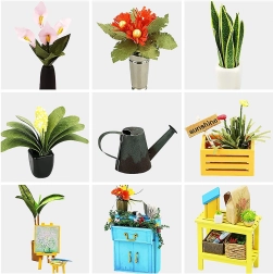 Fedezd fel a miniatűrök varázsát a Robotime Mini Üvegház modellel. A dobozban előre kivágott rétegelt lemez elemeket, papír nyomatokat, textil- és fémrészeket találsz, amelyek festés és ragasztás után egy lenyűgöző, növényekkel és kerti kiegészítőkkel teli üvegházikót alkotnak. A LED világítás meleg, otthonos hangulatot ad a kész modellnek.