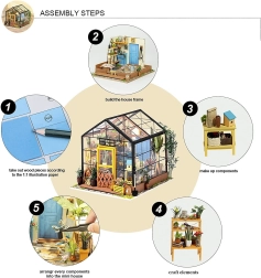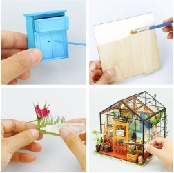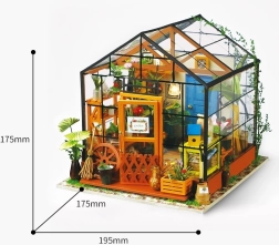 Miniatűr üvegház a ROBOTIME-tól részletgazdag kreatív építőkészlet, amellyel kellemes alkotói pillanatokat élhetsz át, és otthonos, LED világítással ellátott dekorációt készíthetsz. A csomag mindent tartalmaz az összeállításhoz – ragasztót, festékeket, ecsetet és apró szerszámokat. A modell gazdag részleteivel, élethű megjelenésével és a építés relaxáló élményével tűnik ki.
