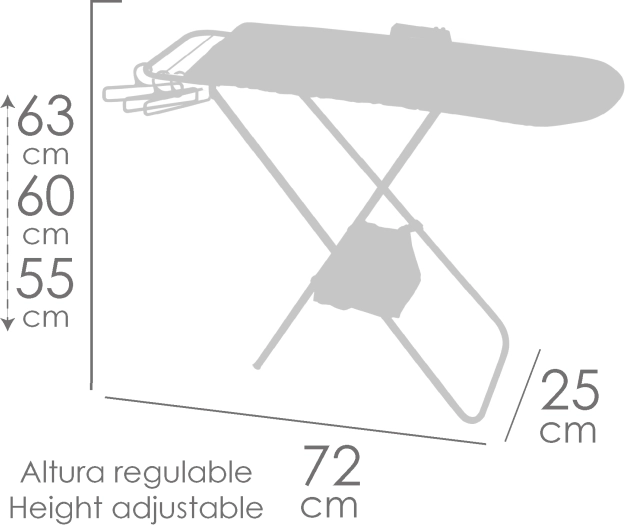 A GALA kollekció játékos, összecsukható babavasalódeszkája örömet szerez minden kis háziasszonynak. Háromszintű, állítható magasságot, könnyű kezelhetőséget és gazdag kiegészítőket a valósághű játékhoz kínál – műanyag vasalót, vállfákat és egy praktikus textil kosarat. Remek dizájnja és precíz kivitelezése támogatja a kreatív játékot 3 éves kortól.