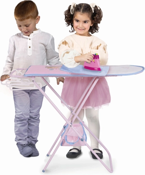 A csomag a teljes játékhoz praktikus kiegészítőket tartalmaz – egy műanyag vasalót, 3 vállfát a ruhácskákhoz, valamint egy textil kosarat, amely a szerkezethez van rögzítve. A deszka összecsukható, könnyen hordozható és tárolható, és a minőségi anyagoknak (fém, műanyag, textil) köszönhetően bírja a mindennapos használatot.