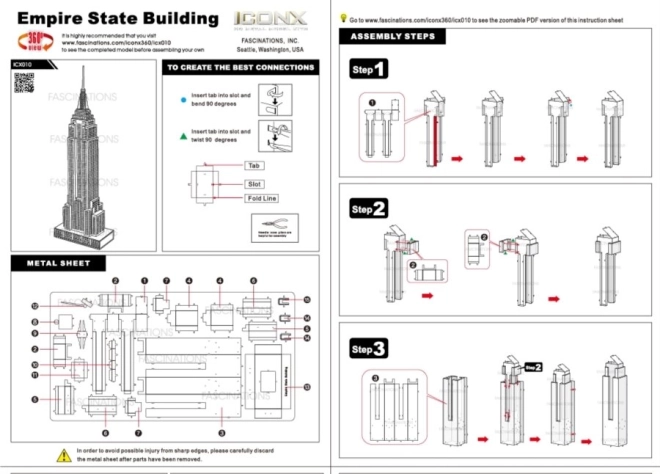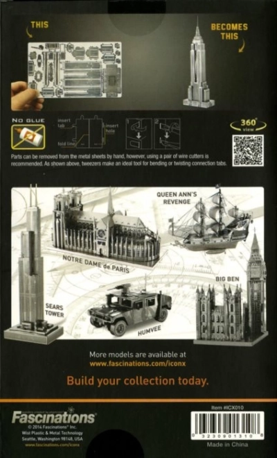 Élvezze a izgalmas kihívást és esztétikai élményt, miközben összeállítja az Empire State Building 3D fém modelljét. Ez a prémium ICONX sorozatú modell részletes kivitelezést kínál, és ideális dekoráció otthonra vagy irodába.