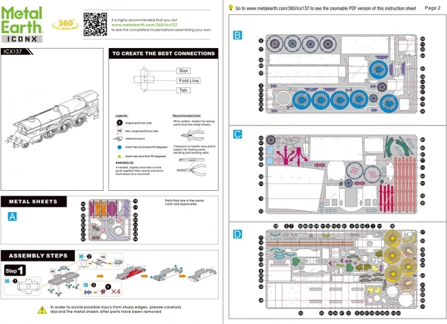 Az összeállítás tiszta és intuitív – az alkatrészeket egyszerűen kinyomod az acéllapokból, és reteszekkel illeszted össze, így nincs szükség ragasztóra. A kényelmesebb munkához finom fogót és kis csípőfogót ajánlunk (nem tartozékok). A csomagban csipeszt és áttekinthető útmutatót is találsz, amely végigvezet a teljes folyamaton.