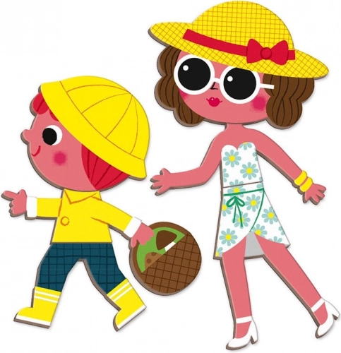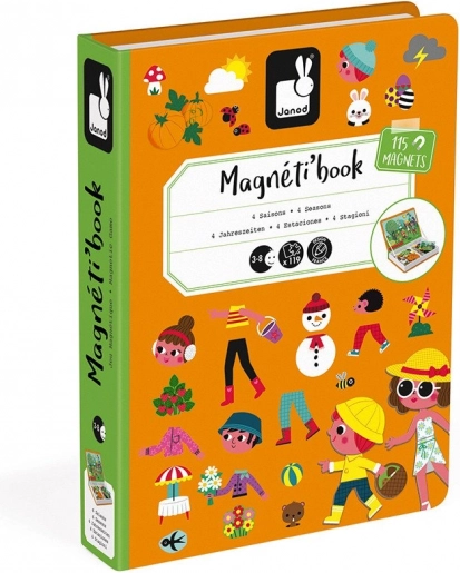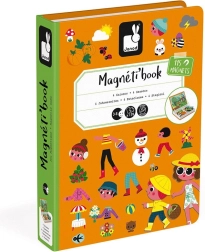 A Janod Magnetibook – évszakok mágneses könyv fejleszti a fantáziát, a logikus gondolkodást és a finommotorikát. A gyerekek a kártyák szerint rakják ki az egyes évszakok jeleneteit, és kiválasztják hozzájuk a megfelelő ruhákat és kiegészítőket. A könyv formájú, kompakt kivitelnek köszönhetően ideális utazáshoz, autóba vagy vendégségbe.
