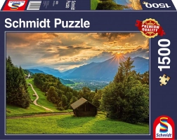 Élvezze a pihenést és a koncentrációt a minőségi SCHMIDT kirakóval, melynek motívuma a naplemente Wamberg hegyi faluja felett. A 1500 darabos szett gyönyörű képet kínál gazdag színekkel és éles részletekkel, és kirakva kb. 83,6 × 58,8 cm méretű lesz.