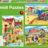 A Schmidt Puzzle A farmon lehetőséget nyújt a gyerekeknek, hogy belemerüljenek a vidéki és természeti világba. Minden puzzle 24 darabos, és a kirakott mérete kb. 26,3 x 17,8 cm, így létrehozhatnak egy élénk és színes farmképet.