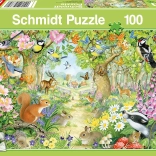 A Schmidt Puzzle Az erdőben 100 darabot tartalmaz, és úgy lett tervezve, hogy órákig tartó szórakozást és tanulást biztosítson. Az erdő témája gyönyörű, tele színekkel és részletekkel, amelyek lenyűgözik a gyerekeket.