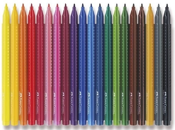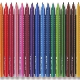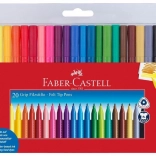 Ergonomikus Faber-Castell Grip filctoll-készlet 20 darabbal, élénk és intenzív színekkel, vízbázisú tintával, amely a legtöbb textíliából kimosható, valamint kényelmes háromszögletű testtel GRIP zónával. A tartós hegy magasabb nyomást is bír, a műanyag doboz pedig megkönnyíti a szállítást és a tárolást.