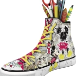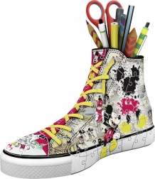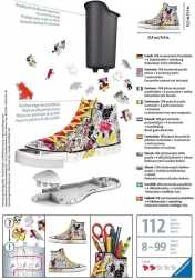 Ez a 3D puzzle a Ravensburger-től ötvözi az összerakás iránti szenvedélyt egy egyedi dizájnnal. A dizájnos tornacipő speciális hajlított és rugalmas darabokkal rendelkezik, amelyek pontosan illeszkednek a helyükre ragasztó használata nélkül. A minőségi műanyag biztosítja az elkészült modell kiváló stabilitását.