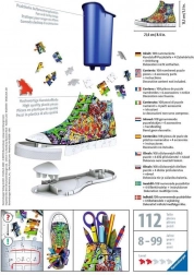 Fedezze fel a szórakozás és a funkcionalitás egyedülálló ötvözetét. A graffiti dizájnú 3D puzzle tornacipő speciálisan formázott és hajlékony műanyag elemekből áll, amelyek pontosan illeszkednek egymáshoz, így ragasztó nélkül is stabil díszt alkotnak. Összeállítás után egy egyedi szervezőt kap ceruzákhoz, színesekhez vagy ollóhoz, amely kreatív hangulatot ad az asztalának.