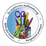 A kész modell praktikus ceruzatartóként működik ceruzákhoz, színesekhez, ollóhoz vagy filcekhez, és egyben feltűnő dísze az íróasztalnak.