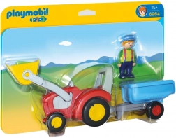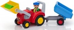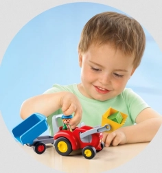 A PLAYMOBIL 1.2.3 Traktor és Pótkocsi egy színes, szórakoztató készlet a kicsiknek, amely segíti fantáziájuk fejlődését. Farmer figura ül a piros traktorban, amelyet könnyen mozgathatnak kis kezek segítségével. Használja a traktor elején található lapátot a rakomány pótkocsira helyezéséhez, majd szállíthatja azt egyik helyről a másikra.
