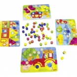 Először a gyerekek megtanulhatják saját kedvük szerint a színes köveket a képekbe illeszteni, miközben az ujjaikat és a finommotorikát gyakorolják.