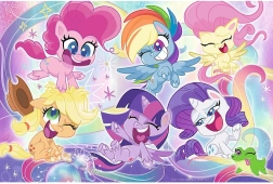 Ezek a puzzle-k 24 nagyon nagy darabot tartalmaznak, amelyek ideálisak kisgyermekek és My Little Pony rajongók számára. Az összeállítás után egy nagy kép keletkezik 600x400mm méretben, ami szobadíszként is használható.